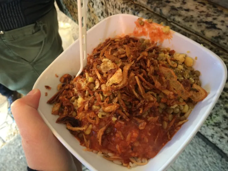 As we dug in our bowls, a middle-aged Egyptian man eyed us curiously and expressed his concern over a five-foot Asian girl eating koshary.