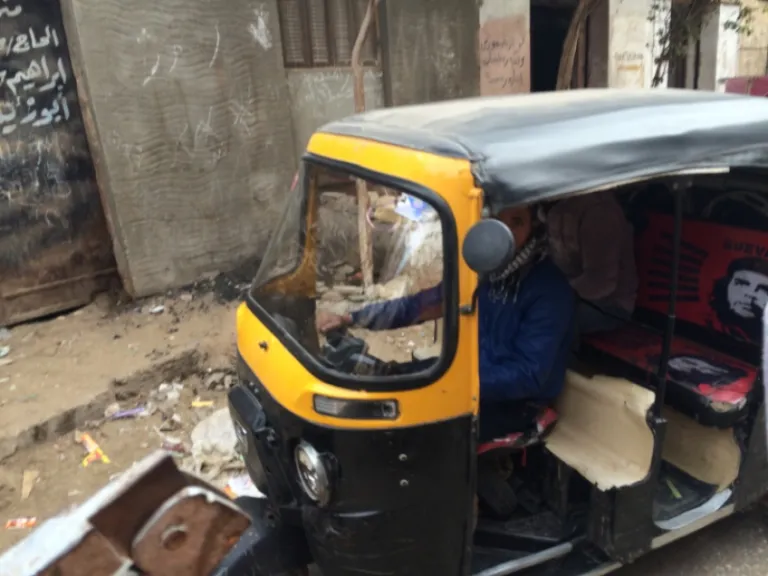 She graciously returned our money, and Adam and Anas and I wasted no time taking the 15-minute walk uphill. We passed by a thickly residential area in Alexandria where tuktuks (a three-wheeled taxi driven by a motorcycle) blasted upbeat Arabic songs to attract potential passengers.