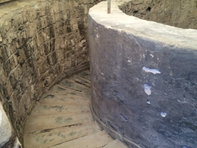 The ground floor contained a high-ceilinged mosque, a deep well, and a room with a small pit which must have served as a toilet. Coming up a long flight of uneven, large-gapped stone steps was a hallway with narrow slits for windows and (gasp!) a security guard who shooed us out of the premises, because it was officially closing time.