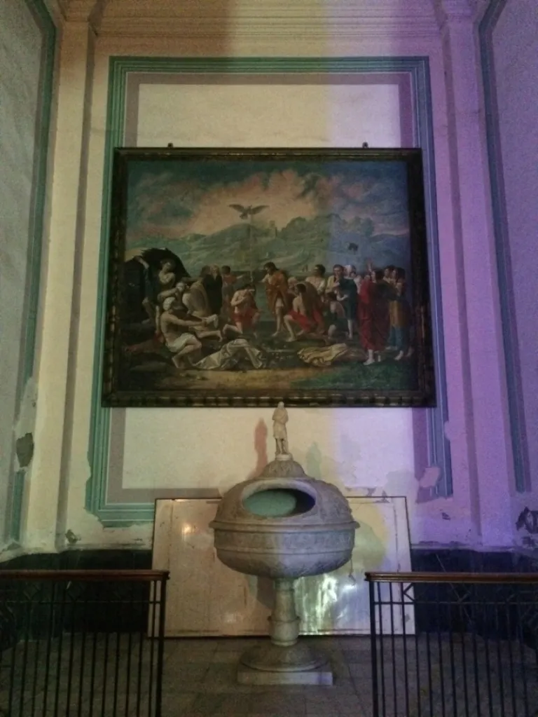 On the other side of the door was Our Lady holding the child Jesus to whom I offered the rose from the Citadel. With only three people praying on the church pews, I led Adam and Anas on a tour around the Cathedral.