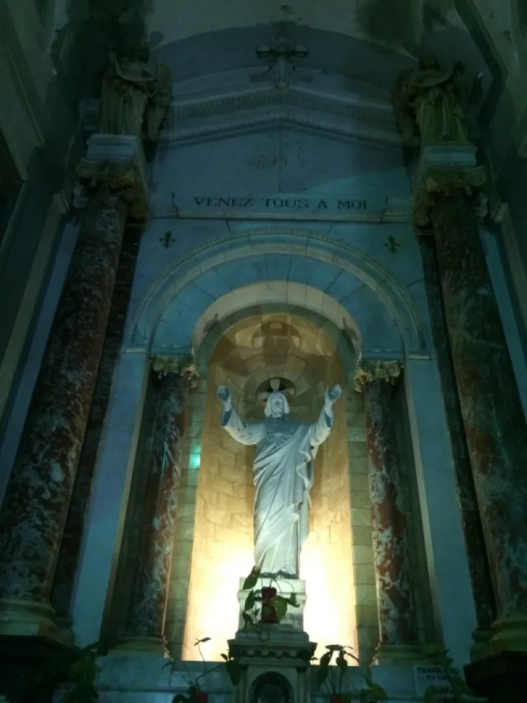 I showed them the small chapels on the east and west wings with life-size statues of St. Joseph and the Sacred Heart of Jesus.