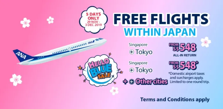 Sample Singapore to Japan flights in ANA’s Hello Blue Sale Fare