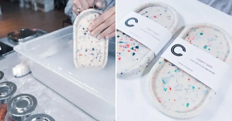 If you’re unsure of what this means, Terrazzo is a composite material which is poured in place or precast. Its design is usually a light-coloured base peppered with pastel coloured spots. In this workshop, you’ll be using Jesmonite, an eco-friendly resin, to make your very own knick-knack!