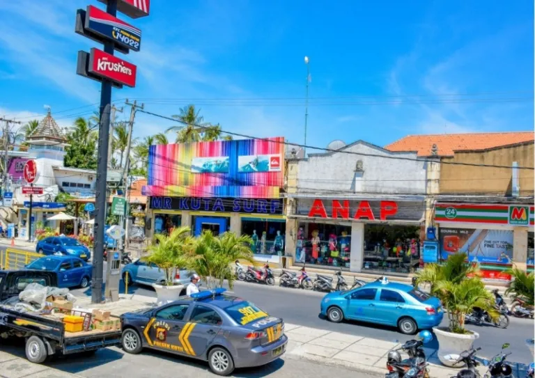 There are also a variety of restaurants available, from international fast food chains like McDonald’s to local favourites like Sari Warung Menega. At night, the street transforms into an energetic hub, with bars like Bounty and Sky Garden attracting partygoers. No doubt, this is one of the busiest tourist streets across all Bali towns!