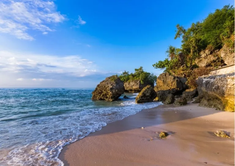 Carved into the dramatic cliffs of Bali’s Bukit Peninsula, Uluwatu bursts with a unique charm that is distinct from other Bali towns. Known for its iconic Uluwatu Temple, this town promises breathtaking ocean views and a captivating experience. Beyond the temples, Uluwatu is teeming with stunning beaches, hidden coves, and other natural beauty that will surely pull on your heartstrings.