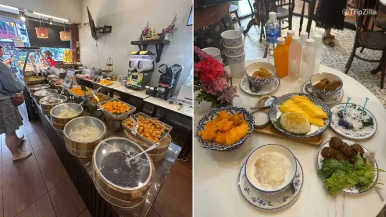 Banthat Thong is undoubtedly a hidden gem, popular among locals, particularly university students, compared to the tourist-congested Chinatown area. Yet it’s definitely an up-and-coming district, with plenty of new eateries opening up along its span, serving a cosmopolitan variety of culinary delights to satisfy every palate. Despite spotting my beloved Mixue Snow King across the street, I decided my first gastronomical experience in Thailand should be authentic Thai desserts! We stopped at Mae Duan Thai Desserts for what felt like a buffet of Thai goodies.