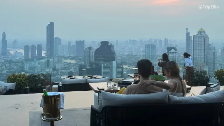 Stepping out of the lift at Le Du Kaan, it’s easy to see why these spots are so revered: the views are absolutely phenomenal. The restaurant’s location in the heart of Bangkok’s downtown district, surrounded by towering skyscrapers (including the iconic MahaNakhon), offers a dramatic backdrop to its modern, laid-back vibe.