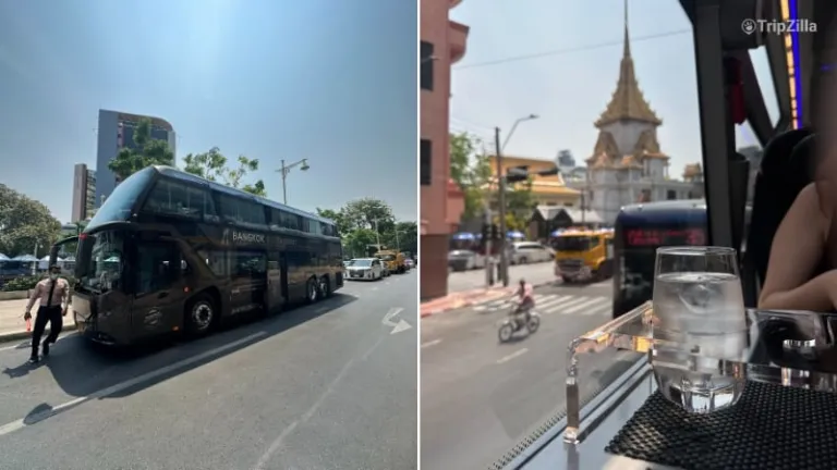 I won’t lie, it felt a bit overwhelming, especially for someone who usually budgets meticulously and sometimes opts for convenience-store ramen. The food, though, was superb: Seven courses of Thai delights that made me feel like I’d floated up to seventh heaven (get it?)! Plus, being able to witness some of Bangkok’s best sights from the comfort of this bus-restaurant hybrid was the shining ribbon on the gift that was my first Thailand trip.