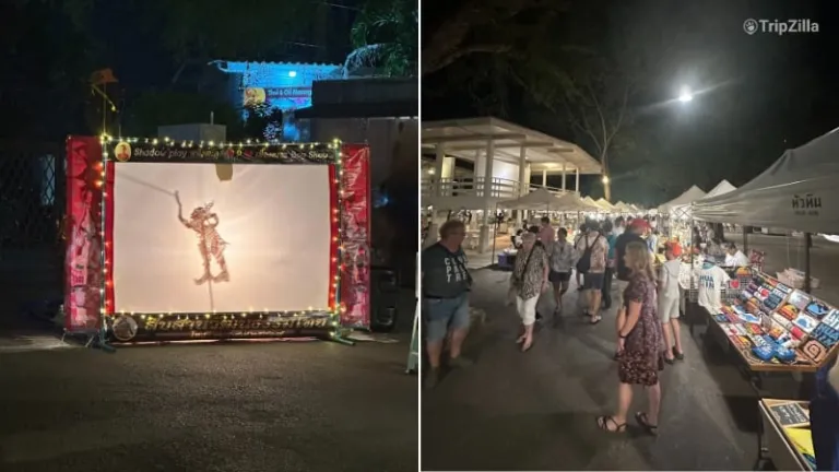 We wrapped up our night at the Cicada Market, and we described it as Hua Hin’s very own version of Singapore’s Arab Street or Haji Lane. The stalls sell trendy souvenirs, clothing, and artwork, while live activities include a shadow puppet show, musical performances, and even a massage corner. If you’re looking for an alternative night market beyond the main Hua Hin scene, Cicada Market is the place to go.