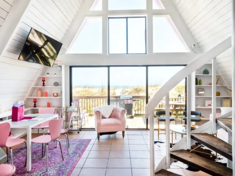 The all-pink Airbnb stands out from neutral-hued beach houses in the area, so you won’t have trouble finding this cheerful escape on the beach. It’s also conveniently located just five to 10 minutes from the historic neighbourhood of Downtown St. Augustine.