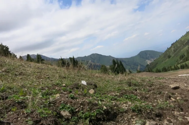 Hiking in the mountains near Almaty. It is a good place for skiing in winter.