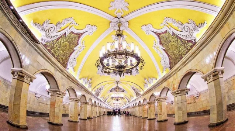 The glitzy interior of a Moscow metro station