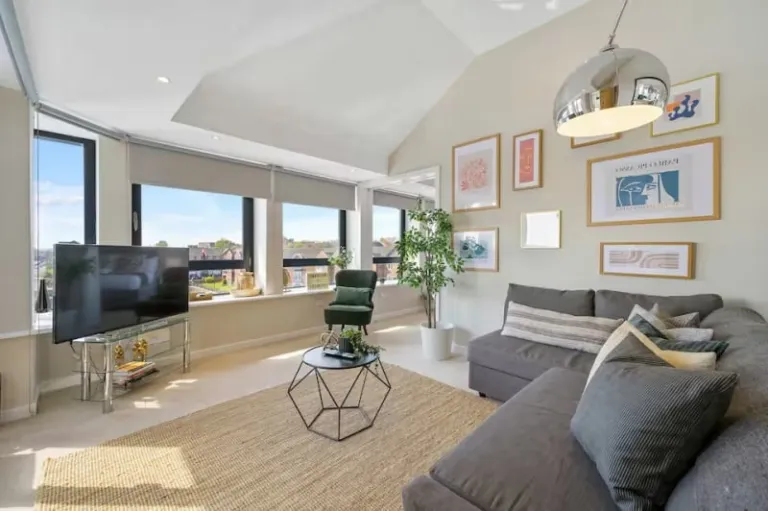 This is a sleek waterfront penthouse for up to 6 guests featuring two double bedrooms, free parking, and stunning marina views from the balcony. Access to amenities such as a stylish lounge with large smart TV and fully equipped kitchen makes this a comfortable base as well. You’ll also be close to Albert Dock and city attractions. Moreover, the Airbnb is nestled in Quiet residential building with friendly host and top reviews
