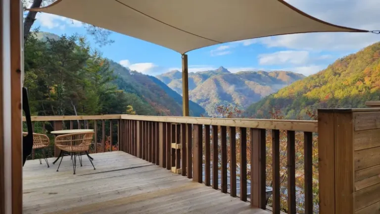 Exploring South Korea on your own or with just one travel buddy? A cosy escape awaits at this pristine cabin in the rural town of Hwachon-myeon. It may be the best Airbnb for travellers who want to go off-the-beaten path for fall foliage, with a patio overlooking the mountains painted in shades of orange, gold, and green in autumn. And we’re quite stoked about the decor, too! Even in the heart of nature, the house boasts Scandi-style interiors that look straight out of our Instagrammable dreams.