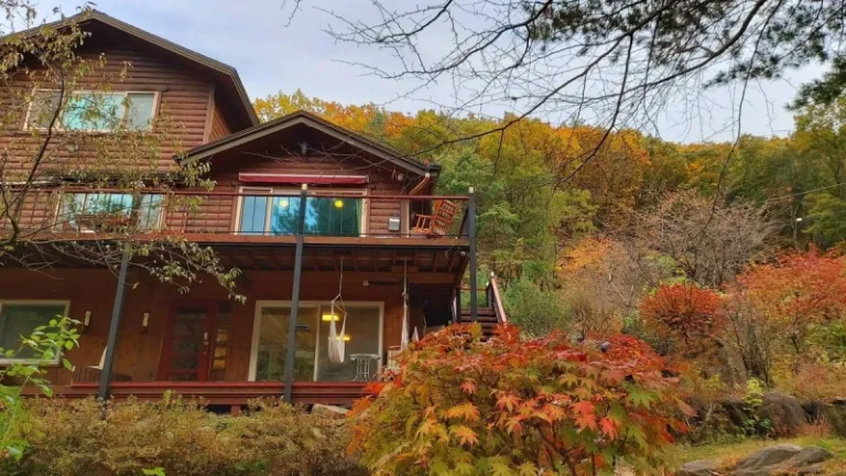 Make your way to North Jeolla Province for a quick vacay at this countryside home that’s located near several of South Korea’s most stunning natural attractions. Just a five-minute drive from this Airbnb is Mt. Gubong, a popular spot for awe-inspiring views of fall foliage. Travellers and photographers also flock to the nearby Jucheon Eco Park and Jucheon Eco Park Lake for leaf-peeping adventures. Autumn colours surround this Airbnb, from the views of the valley to the lush garden.