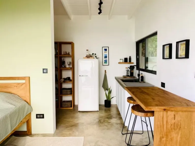 This Airbnb in Grenada West Indies opts for a classy indoor design with standard all-time white Interiors and quality furnishings. The whole indoors gives out a really posh vibe as well despite being a budget-friendly retreat. Additionally, you can enjoy picturesque views of neighbouring mountains and valleys here.