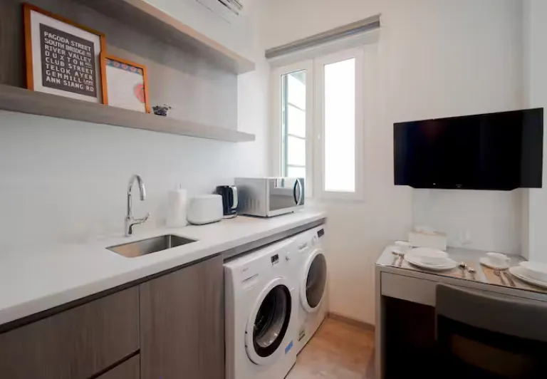 Ideal for extended stays, these Studio Premium Apartments offer a spacious, fully furnished setup with in-room laundry and a handy kitchenette. Located in the heart of Chinatown, guests are surrounded by vibrant food spots and attractions. Thoughtful amenities and optional cooking essentials make it a comfortable, home-like Airbnb for exploring Singapore at your own pace.
