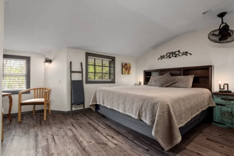 This is a retro-style home that’s quite simple and serene. It is also centrally-located located between the upper & lower historic loop in Eureka Springs. The lovely vintage charm and abundant bright lights makes the ambiance truly tranquil inside. Furthermore, the famous Italian restaurant Ermilio’s is within walking distance from the cottage.