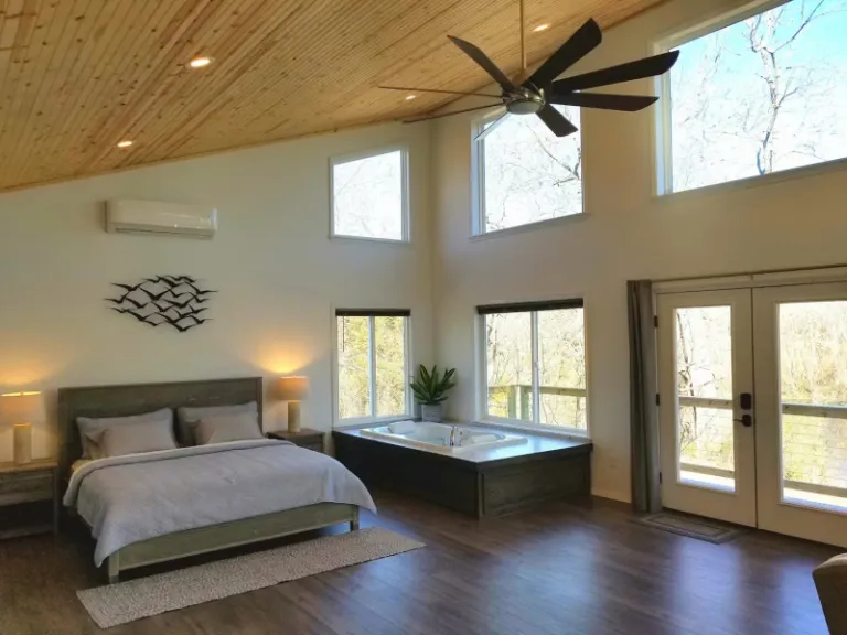 This is a mesmerizing riverfront cabin Airbnb in Eureka Springs that’s perfect for couples. In addition to assuring a comfy experience indoors, guests are bound to get amazed by the breathtaking natural beauty that surrounds this retreat. Furthermore, there’s a hot tub for you to just relax and immerse in tranquility.