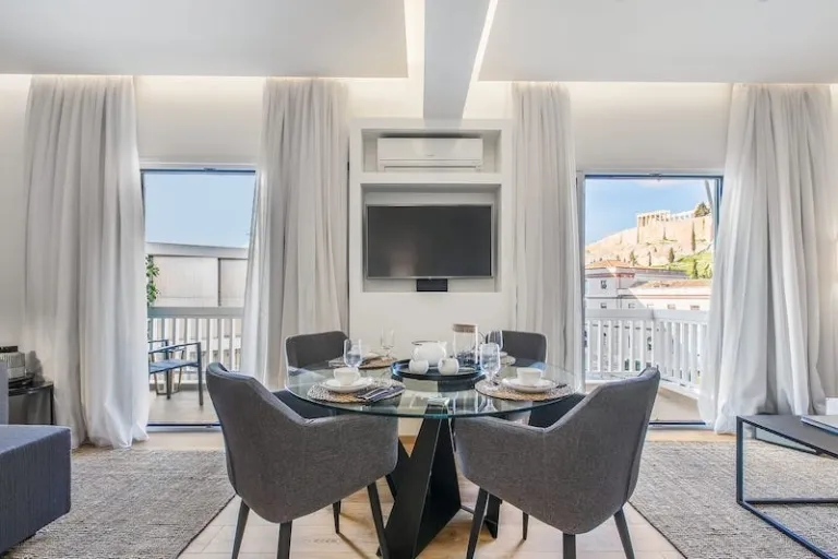 If your Airbnb in Athens doesn’t surprise you with ancient Greek monuments from the moment you walk in, what’s the point? From the balcony to the window of the living room, you can see both the Acropolis and the Acropolis Museum — almost like they’re your next-door neighbours. Guests at this modern two-bedroom apartment can count themselves lucky, for they get to enjoy shopping and sightseeing in the historical centre of Athens.
