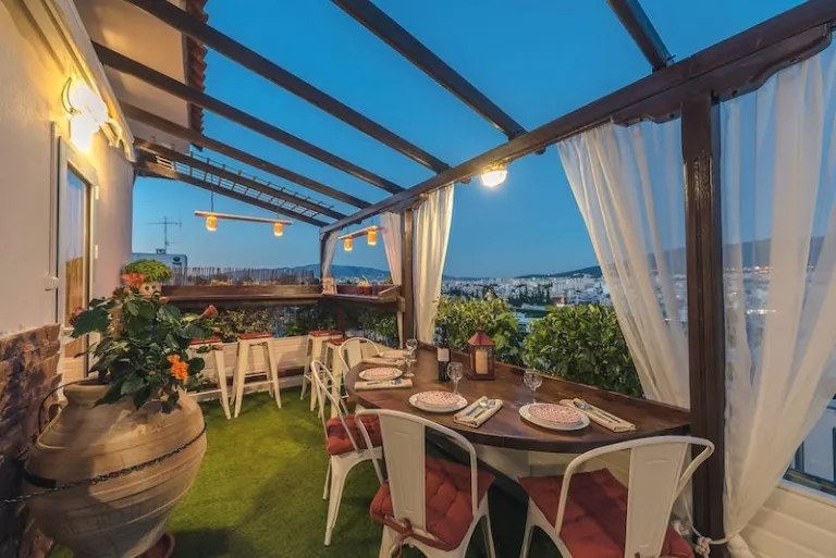 Located in the Monastiraki neighbourhood of Athens, this penthouse apartment with a balcony offers views of the Plaka and the Acropolis without breaking the bank. Inside, you can relish your coffee and breakfast from the balcony, as the Parthenon looms in the distance. The two-bedroom apartment also grants easy access to tourist sites like Monastiraki Square, Ermou Street, Varvakeios Market, and the Temple of Hephaestus. This Airbnb in Athens serves as the perfect home base for eye-opening discoveries in the capital of Greece. Oh, and have you ever tasted Greek coffee before? Luckily, it’s on the house.