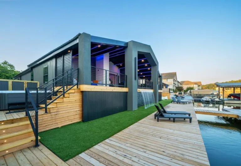 This is one of the most unique Airbnbs one can find in Hot Springs, and it has been designed an ultra-modern disco vibe style that’s bound to make you feel those party vibes. It is a stunning retreat for large gatherings, with the home featuring six bedrooms and accomodation for over fourteen members. Moreover, you’ll be having amenities such as outdoor kitchen, game room, and private boat dock here.