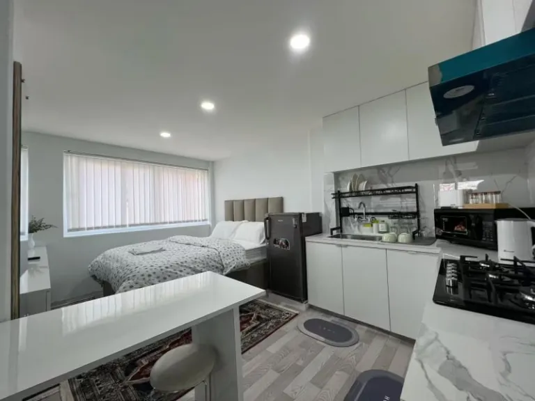 This is a small studio space for couples that has been set up in such a stylish manner. In fact, the vibrant indoor colour scheme, fancy lightings, and lively ambiance all combine brilliantly here. Another major advantage is that couples can even bring their pets here. Moreover, long-term stays are also allowed.