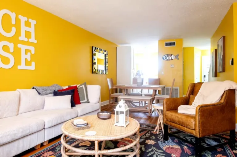 The Biloxi Beach House boasts of a colourful urban chic design that bound to hype you up for your beach trip. You’ll also have beautiful green spaces and a fenced back patio to chill here. Additionally, the property offers access to top-notch amenities such as swimming pools, playgrounds, and a fitness gym.