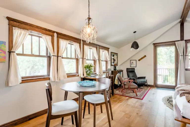 This is a newly remodeled loft that’s located in the North-end area of Boise. You’ll have a typical modern space indoors with all standard facilities and lovely glass windows that offer scenic views. Furthermore, A short walk will take you to numerous cool eating spots as well, and there are even some fantastic hiking spots nearby.