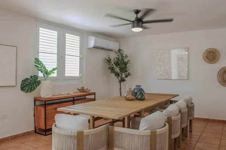 Traditional-style floors, classic all-white interiors, and cute little plant decorations all come together to create a minimalist yet serene space here. The townhouse is also nestled in the heart of Las Croabas, and you’ll also be nearby to some popular restaurants. Additionally, you’ll have a fantastic terrace area with numerous amenities including Jacuzzi here.