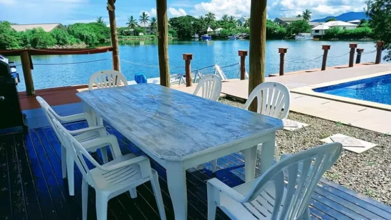 Wake to sunrise colours over the pool and watch evening light fade across the ocean from a wide balcony. Indoor–outdoor spaces flow easily for family stays, with modern bedding, fast Wi-Fi, smart TV and a fully stocked kitchen. Swim by the jetty, barbecue at sunset, then wander to the nearby beach or market. This airbnb in Fiji is designed for easy, breezy island living from first light to starlit evenings.