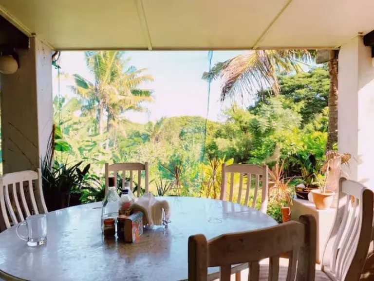 Set on six acres of fruit trees and tropical grounds, this long-loved family home balances comfort with authenticity. Guests enjoy a private room, pool access and a beachfront perfect for wandering or watching the tide shift. Shared kitchen and wood-fired oven add charm for slow meals and long conversations. Peaceful, friendly and well-situated for travellers who like space to breathe.