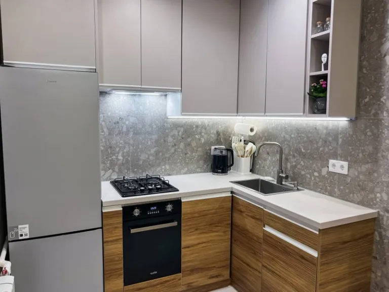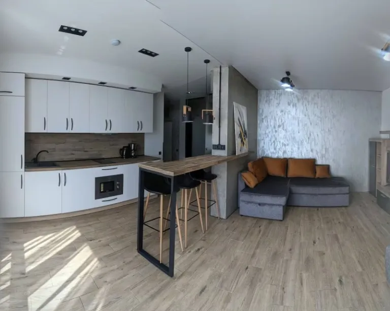 Located in one of Kyiv’s most vibrant residential communities, this thoughtfully designed apartment offers warmth, modern style, and a quiet escape. It features an open-concept layout with wood surfaces, memory foam bedding, and a dedicated workspace. The kitchen and bathroom are fully stocked, and guests are welcomed with complimentary tea and coffee. An excellent choice for travelers who appreciate cozy elegance with local flair.