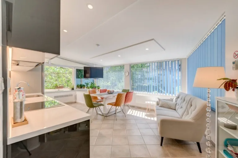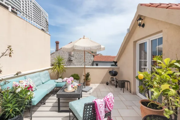 This is a rooftop luxury apartment that’s perfect for couples to relax and chill. In fact, you’ll also have a lovely jacuzzi here to de-stress and evoke positivity. The indoors also feature a basic yet classic design that’s visually enhanced with lovely decorations. Additionally, guests can enjoy beautiful views of city roofs and Marjan hills here.