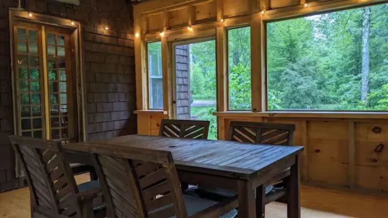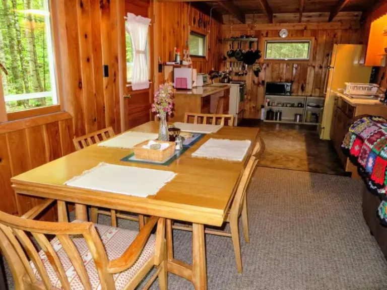Set at the end of a quiet dirt road with fifty private acres as your backyard, this cozy cabin is a true off the grid experience without sacrificing comfort. A king bed, full kitchen, and sunny sitting area make it great for couples or small families. Spend your days exploring local trails, kayaking nearby lakes, or simply birdwatching from your screened sunroom. Pet friendly and full of local character, it’s a great home base for both slow mornings and spontaneous road trips.