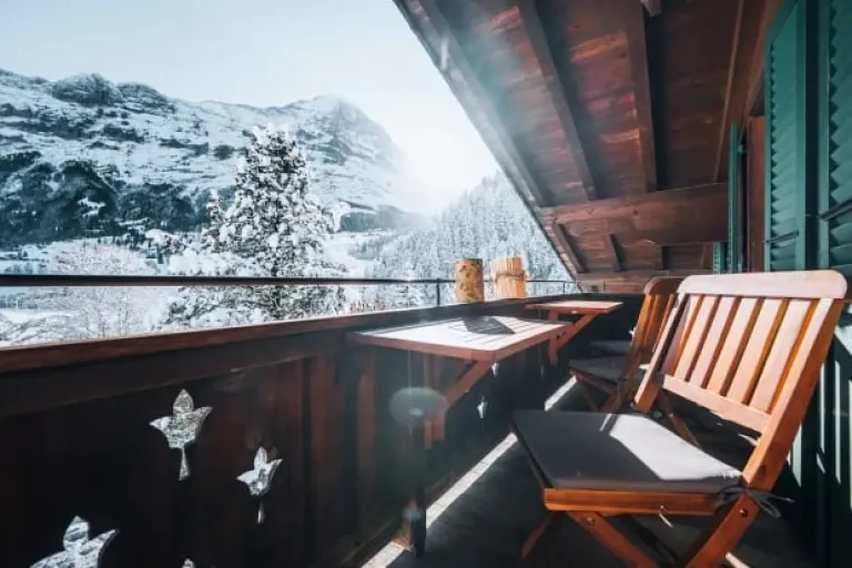 The large terrace is perfect for soaking in the serenity of the Swiss Alps, making it one of the best Airbnbs in Grindelwald, Switzerland for a peaceful getaway.