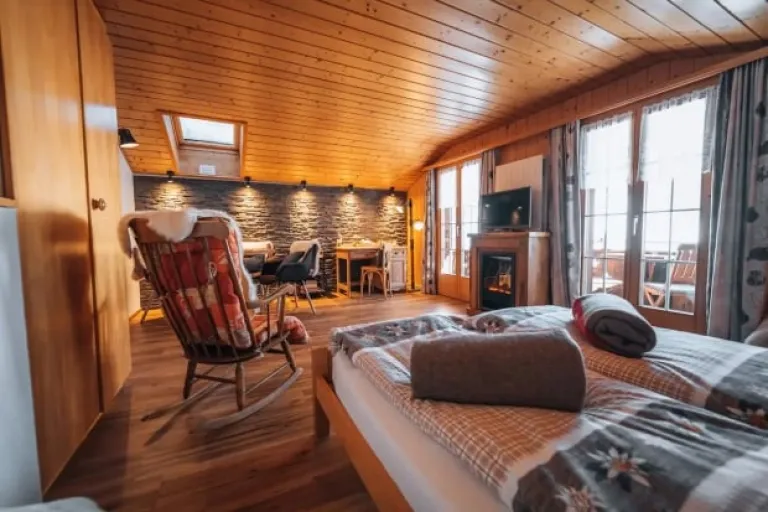 Bisi in Chalet Snowflake is a spacious apartment located above the village of Grindelwald, offering stunning views of the valley. With modern amenities, including a fully equipped kitchen and a wood-burning stove, this Airbnb in Grindelwald is perfect for larger groups.