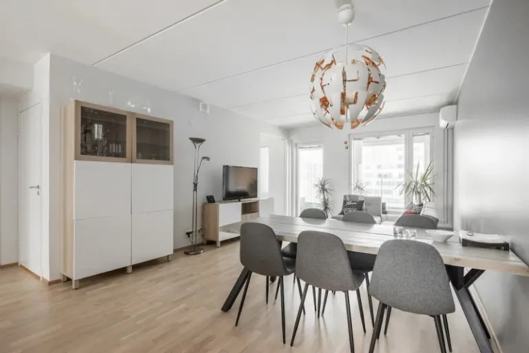 If you’re looking for a stylish and comfortable apartment, this is it. This modern 88-square-meter space can accommodate up to four adults and two children. It features a sauna, a home theater, and a Philips Hue lighting system. Plus, you’ll be just steps away from public transportation and the Tripla shopping center.