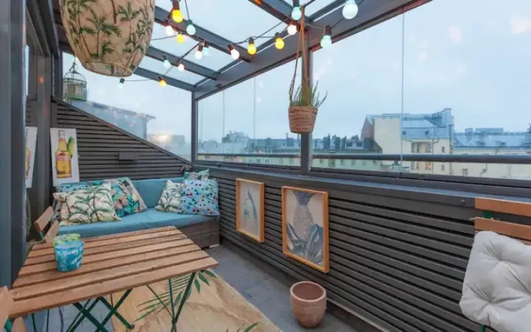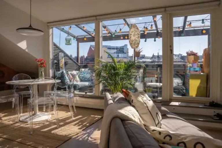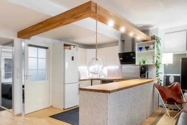 For a truly unique experience, check out this loft apartment in the bohemian Kallio neighborhood. This is one of the that offers stunning rooftop views, air conditioning, and a fully equipped kitchen. It’s perfect for couples or solo travelers who want to be close to the action.