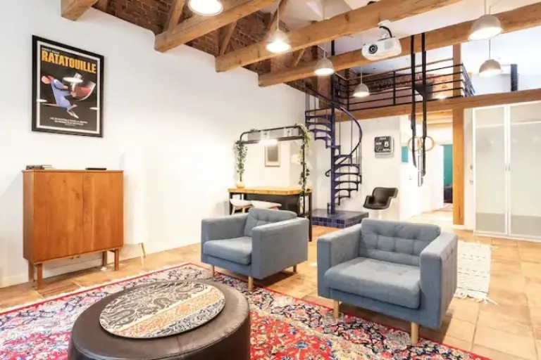 If you’re looking for a unique and atmospheric apartment, this boho loft is a must-see. The spacious living room, fully equipped kitchen, and modern bathrooms make it perfect for couples, small families, or friends. The loft area is a particularly cool feature, offering a cosy sleeping space that feels like a second bedroom.