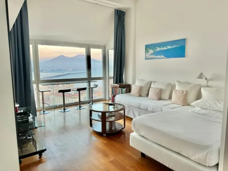 This is a stylish rental property that elegantly combines luxury and comfort, along with exquisite views of the sea and Castel from double balconies. The space is completely immersed in natural lights, and bound to evoke a positive vibe in guests. Moreover, you’ll be near to several famous trattorias.