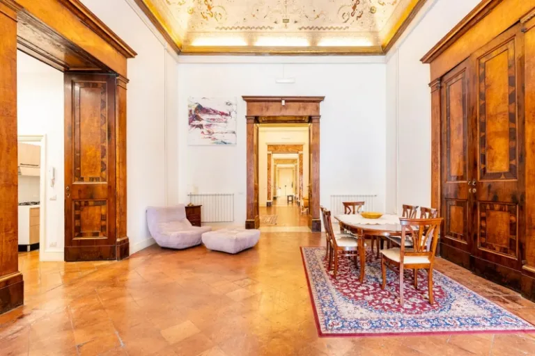This is marvelous apartment with original antique terracotta floors and frescoes of the 1600s. It is a huge four-bedroom property that’s perfect for large gatherings, with accommodation capacity for over 14 members. The space gives out those art gallery vibes, especially with contemporary artworks being filled in the apartment. Furthermore, guests can enjoy exclusive views of the Piazza Dante as well.