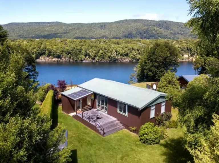5. This riverside charm in Manapouri’s bloom-lined backdrop