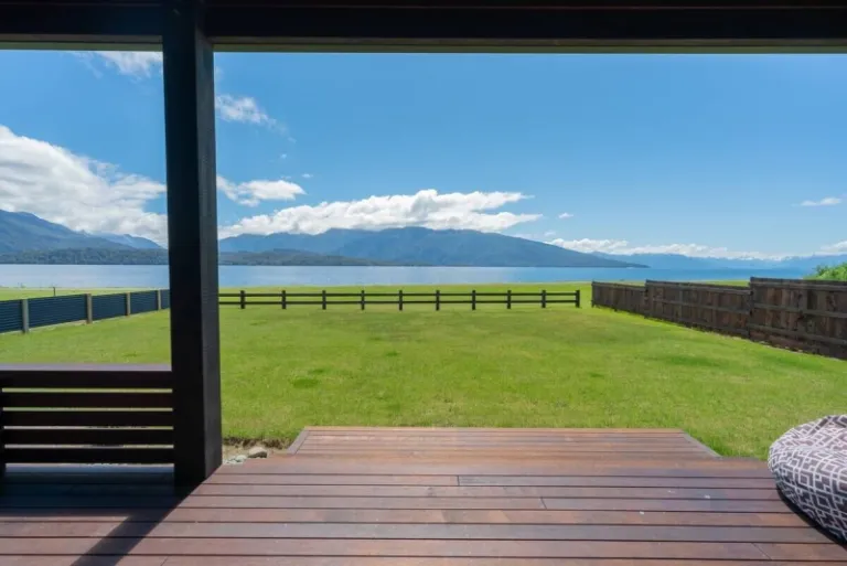 Wake early and wander the nearby bike trail lined with native plants, or set off for day hikes into Fiordland’s uplands, where subalpine meadows are dotted with mountain daisies and flowering herbs. In the evening, relax on the deck and watch Fiordland’s epic light show—sunset casting gold over snow-capped peaks.
