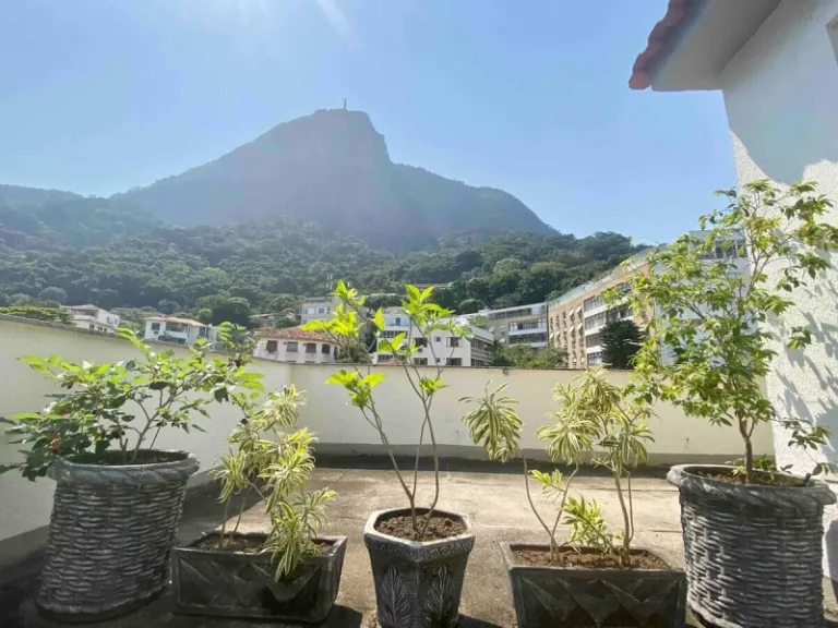 Located on a quiet street in Jardim Botânico, this renovated apartment offers a blend of modern convenience and old-world charm. The property features two bedrooms, two bathrooms, and an American-style kitchen that flows into a bright living space. Its private patio is the highlight, a green corner where guests can relax while admiring Christ the Redeemer above the treetops.