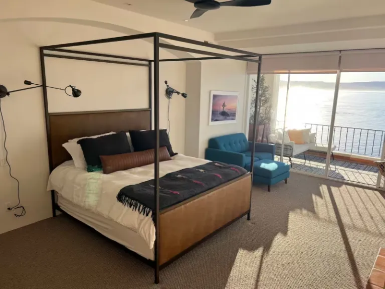 We have yet another beachfront Airbnb in Rosarito that’s magnificently designed and filled with gorgeous views throughout. This one is more suitable for smaller groups though. Furthermore, your are bound to awaken your souls here with the beautiful sunsets, calming waves, and stunning visuals of sea birds, dolphins and migrating whales.