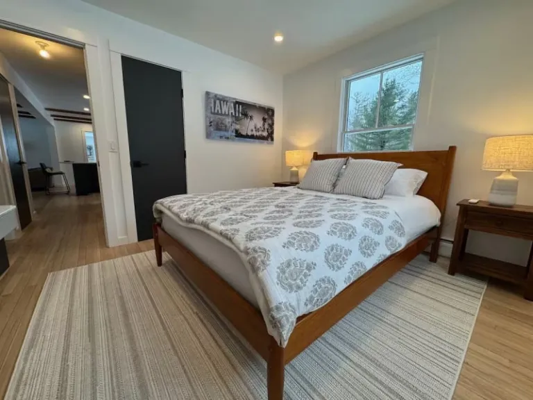 Inspired by surf culture and set just a short walk from Stowe’s Cady Hill trail network, Stowke Haus is a casual, creative hideaway that blends comfort with character. It includes three bedrooms, a full kitchen, and an airy living space outfitted with cozy furniture and trail maps on the walls. Ideal for mountain bikers and weekend explorers, the home also features a dedicated workspace and a mellow vibe perfect for winding down after a day outdoors. The mountain resort and town center are just minutes away.