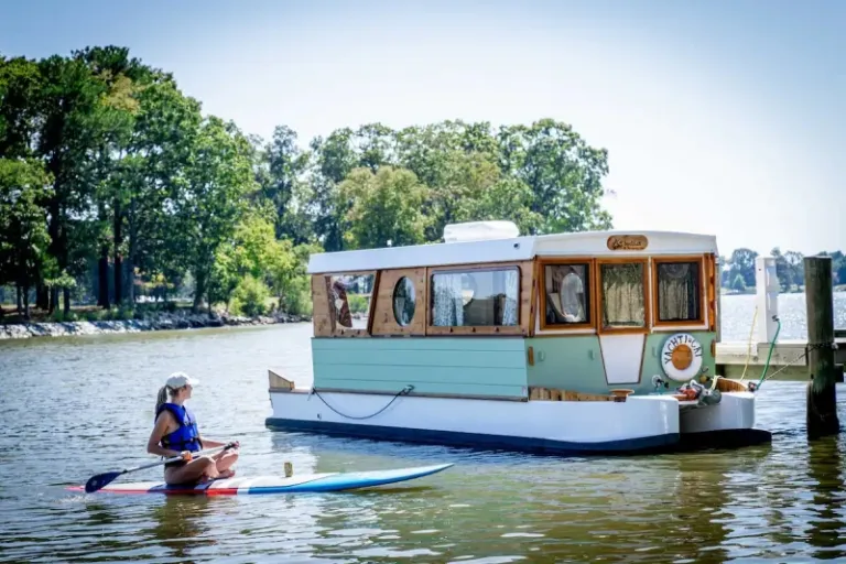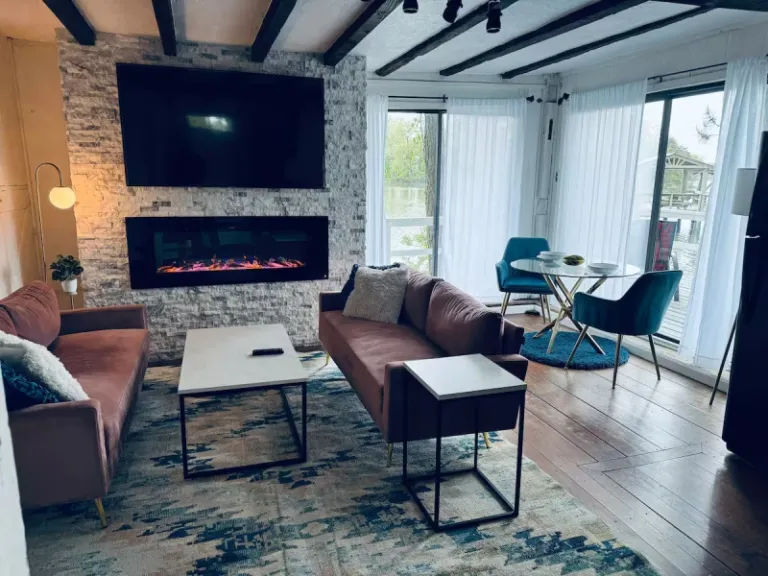 An extraordinary Airbnb experience in Queenstown, Maryland is guaranteed with this retreat. Guests can enjoy the most exquisite Airbnb experience with the most breathtaking waters surrounding them all over. The houseboat has been designed in such a cute way as well indoors, and you can also take part in various activities including fishing. Moreover, you bring your pets as well here.