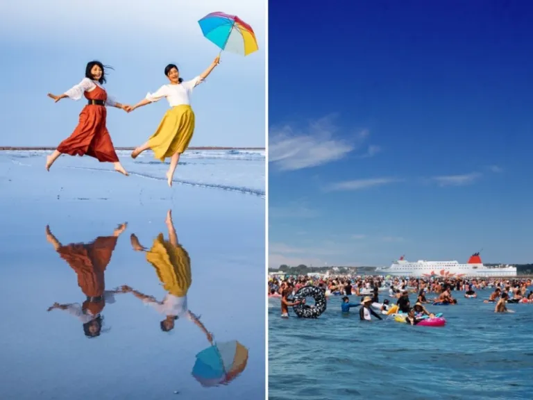 In need of some good travel photos? Oarai Sun Beach in Ibaraki Prefecture will give you plenty. This is one of the beaches near Tokyo ideal for Instagram-worthy shots. At certain times of the day (usually early in the morning), the residual water on the shore forms a natural mirror along the coastline.