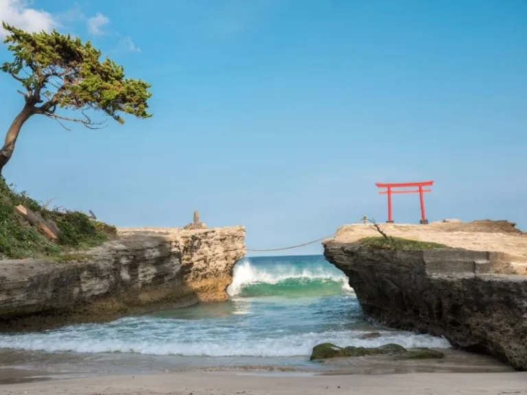 How about a torii gate right at the beach’s doorstep? Shirahama Beach in Shizuoka Prefecture is about three hours from Tokyo and is ideal for both surfing and swimming. Its name translates to “white sands beach” in English, and it certainly lives up to that.